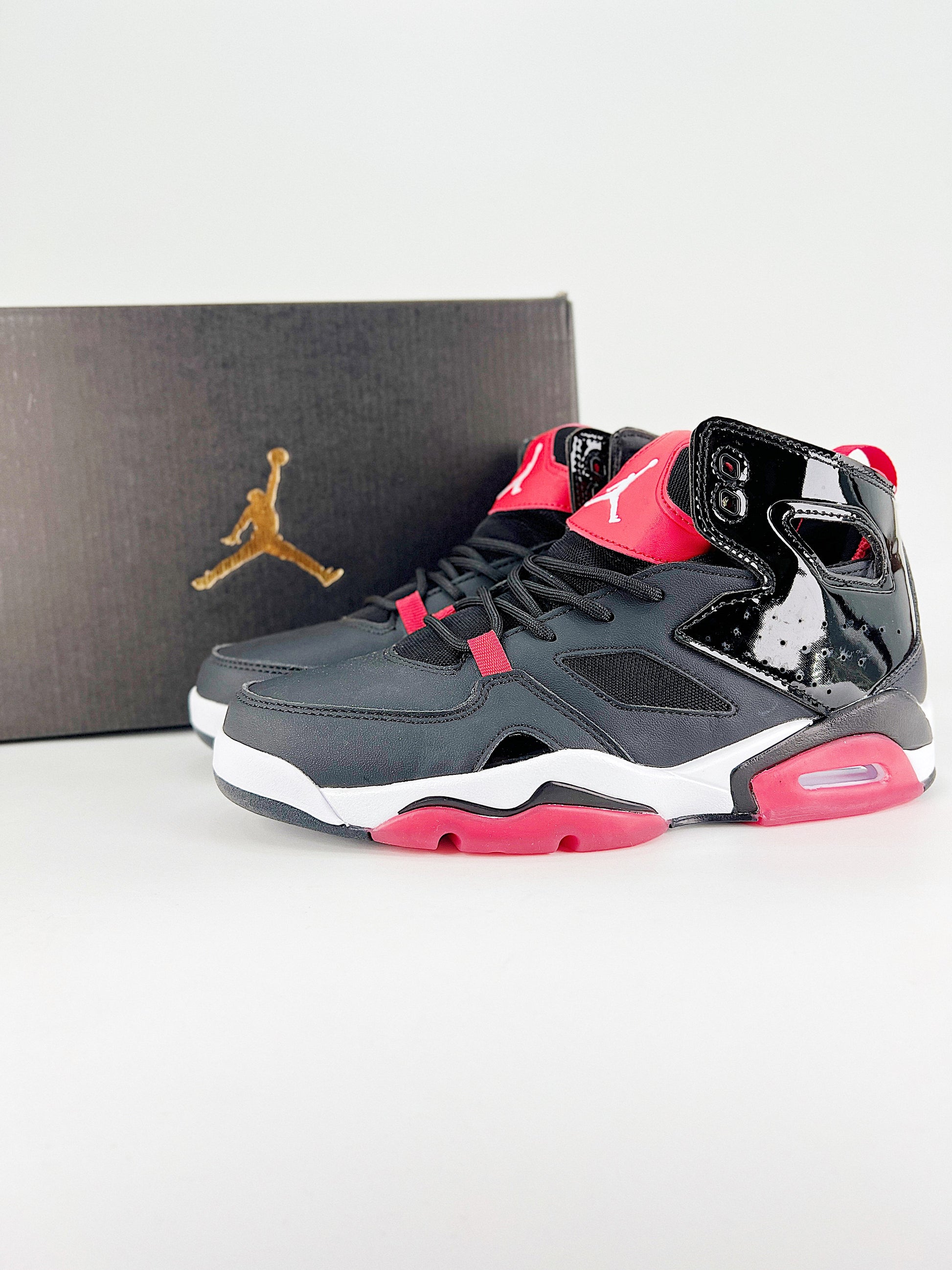 Inspirado no icônico Jordan 6, o Flight Club 91 combina estrutura robusta com um visual moderno e urbano. A paleta preta com vermelho cereja e branco entrega contraste e presença — ideal para quem quer se destacar com estilo e conforto.